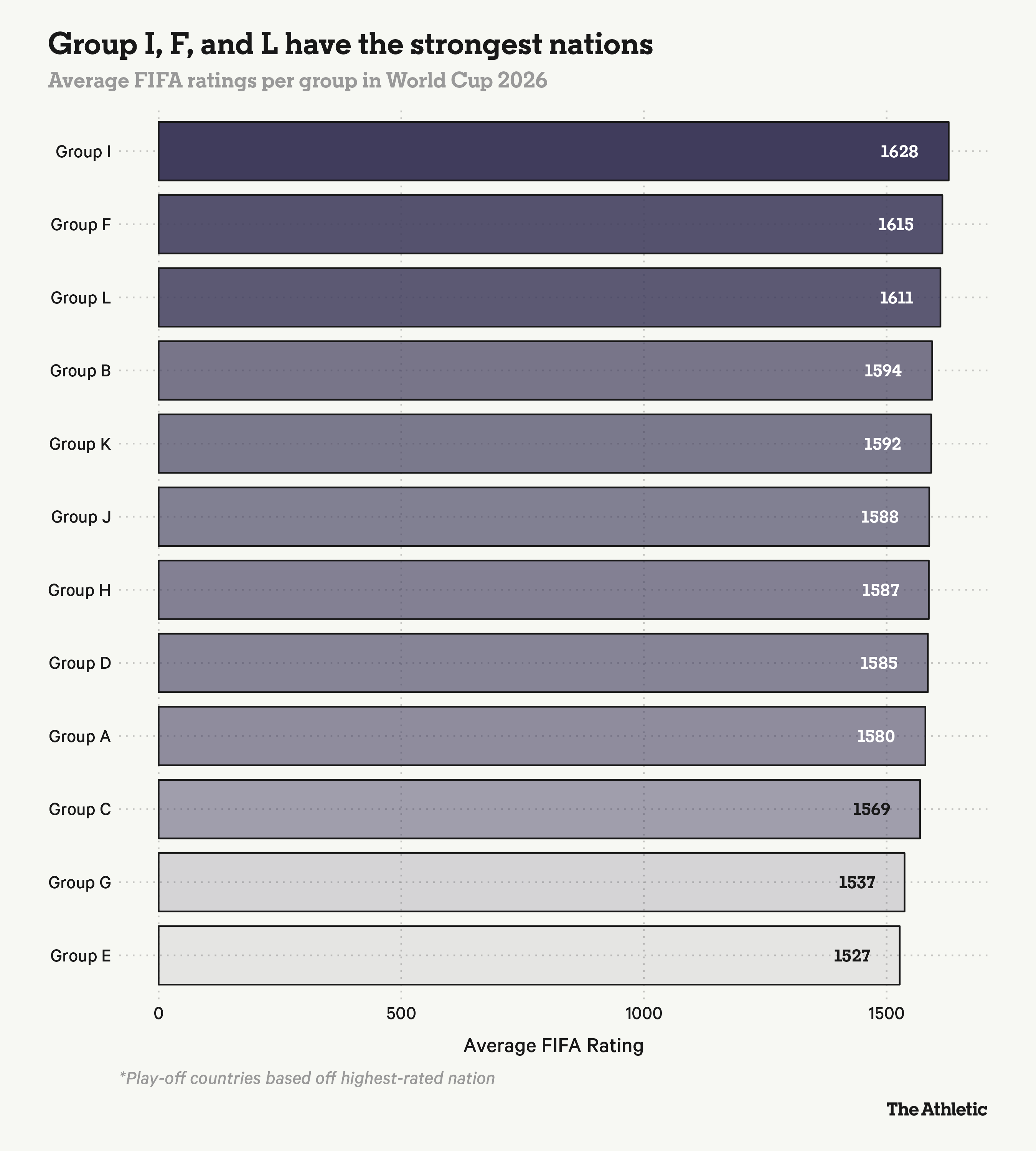 Assuming Iraq win their play-off, Group I looks to contain the strongest nations statistically — with France, Senegal and Norway also battling it out for a place in the knockouts. Group F is not far behind, with the Netherlands, Japan, Tunisia and (potentially) Ukraine being a closely contested fight that is high on quality.