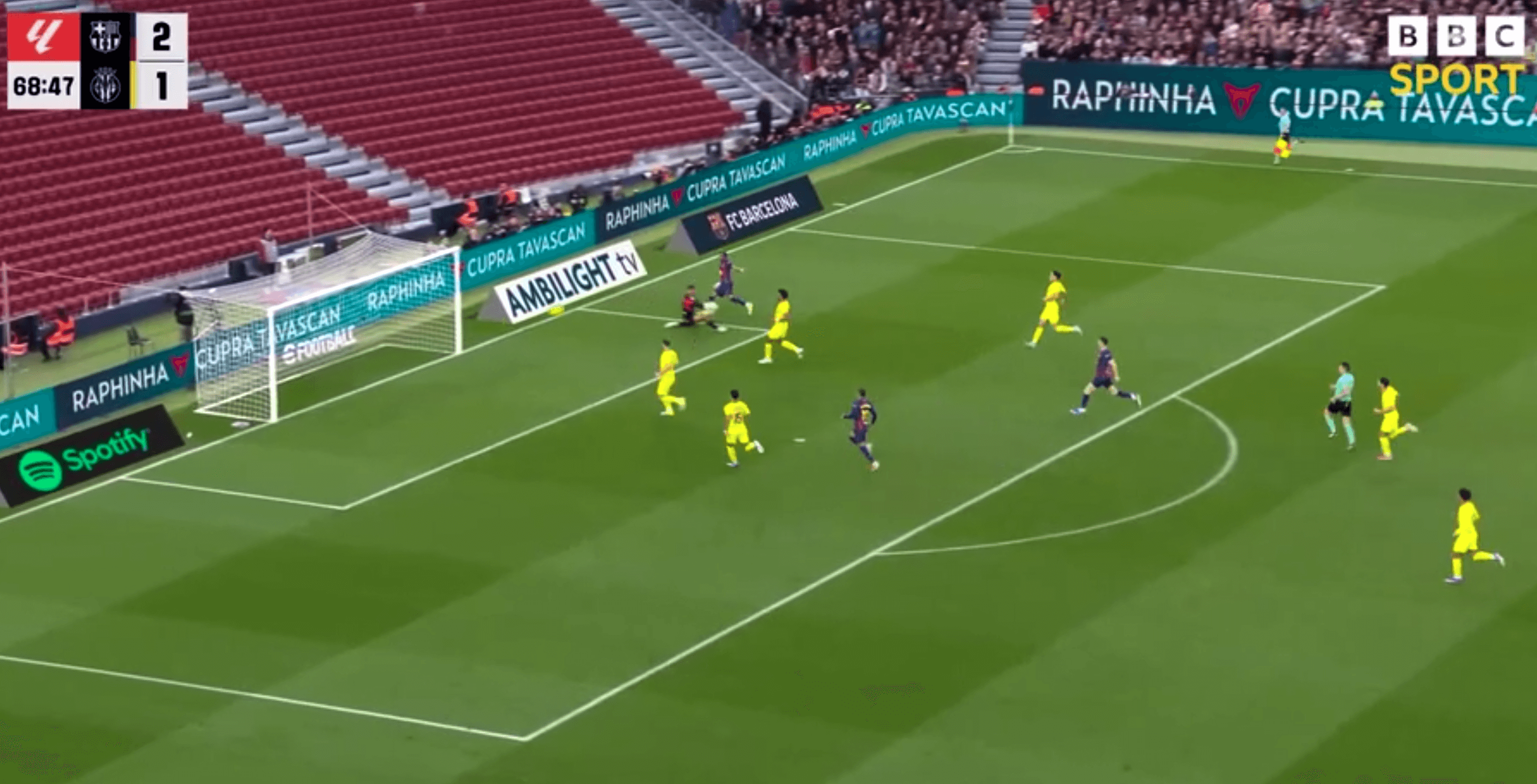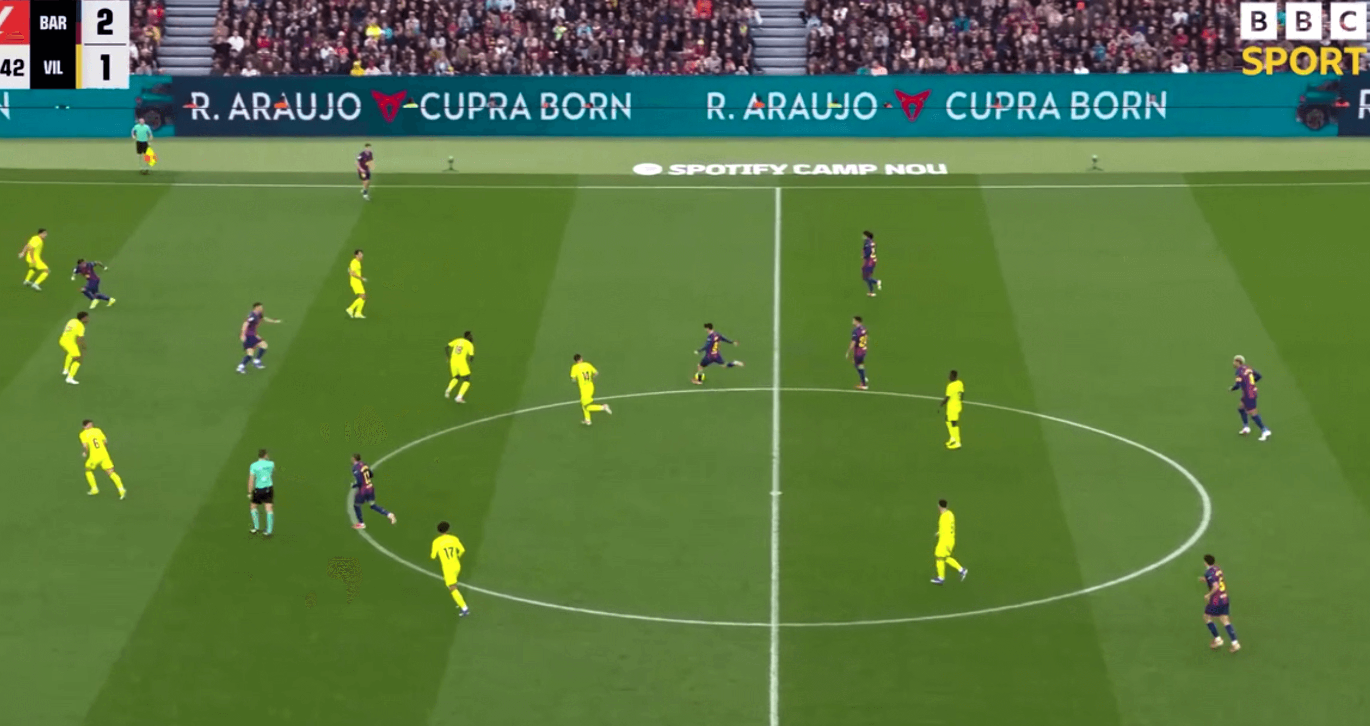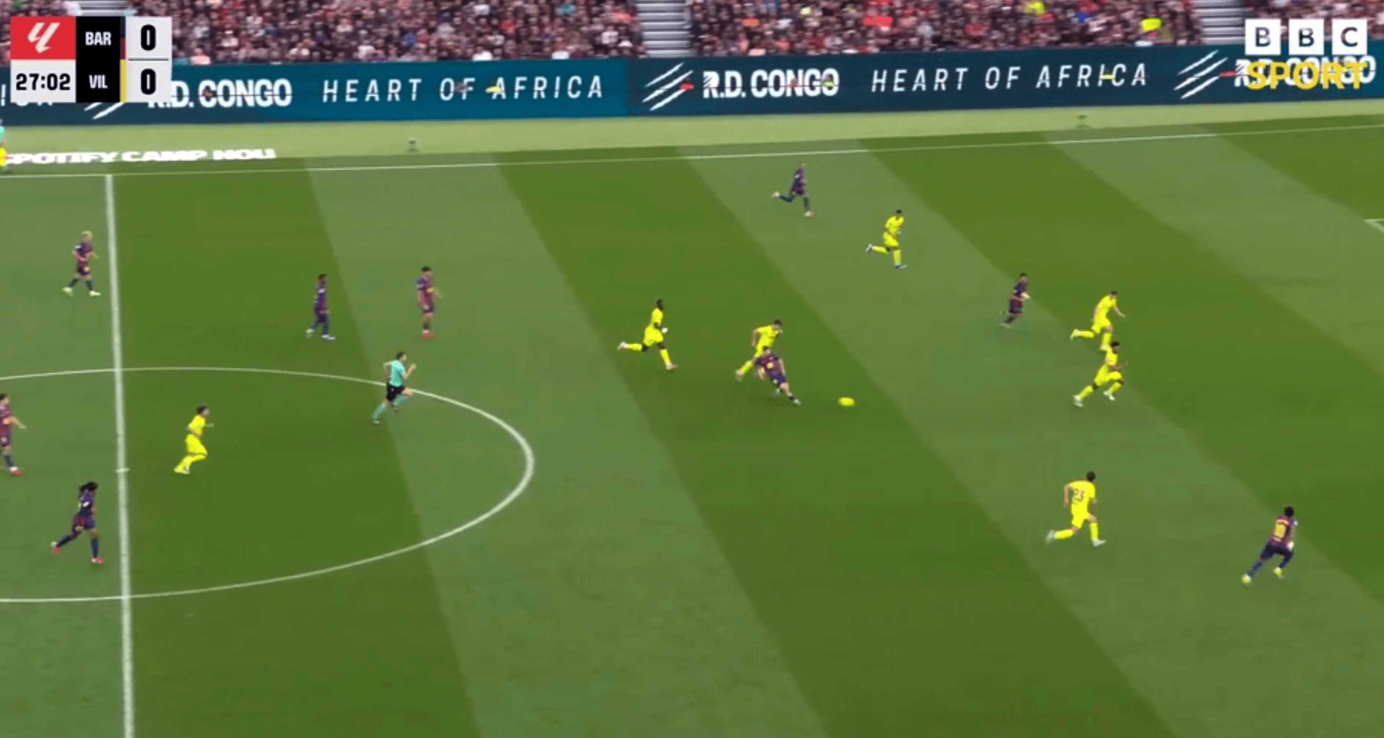 Pedri hizo un pase brillante a Yamal, sacando del partido a varios jugadores del Villarreal…