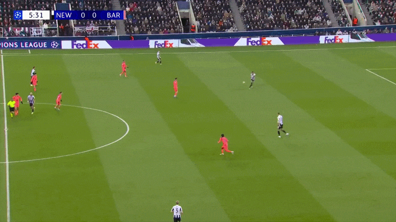 La agresiva presión hombre a hombre del Newcastle y su capacidad para ganar duelos y segundos goles impidieron que el Barça estableciera cualquier control, con Pedri recién regresando de una lesión en el tendón de la corva y Frenkie de Jong aún ausente. En lugar de depender únicamente de las transiciones, Newcastle tuvo más posesión y pudo atacar con confianza en la posesión. A esta altura del juego, Newcastle tiene las herramientas para explotar la línea defensiva alta del Barcelona, especialmente con sus variadas carreras atrás.
