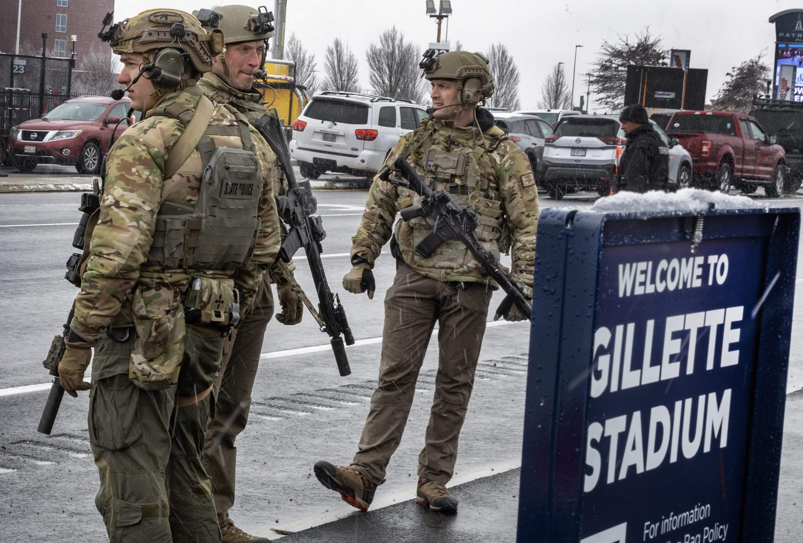 Massachusetts State Police at the stadium in December (Stan Grossfeld/The Boston Globe via Getty Images)