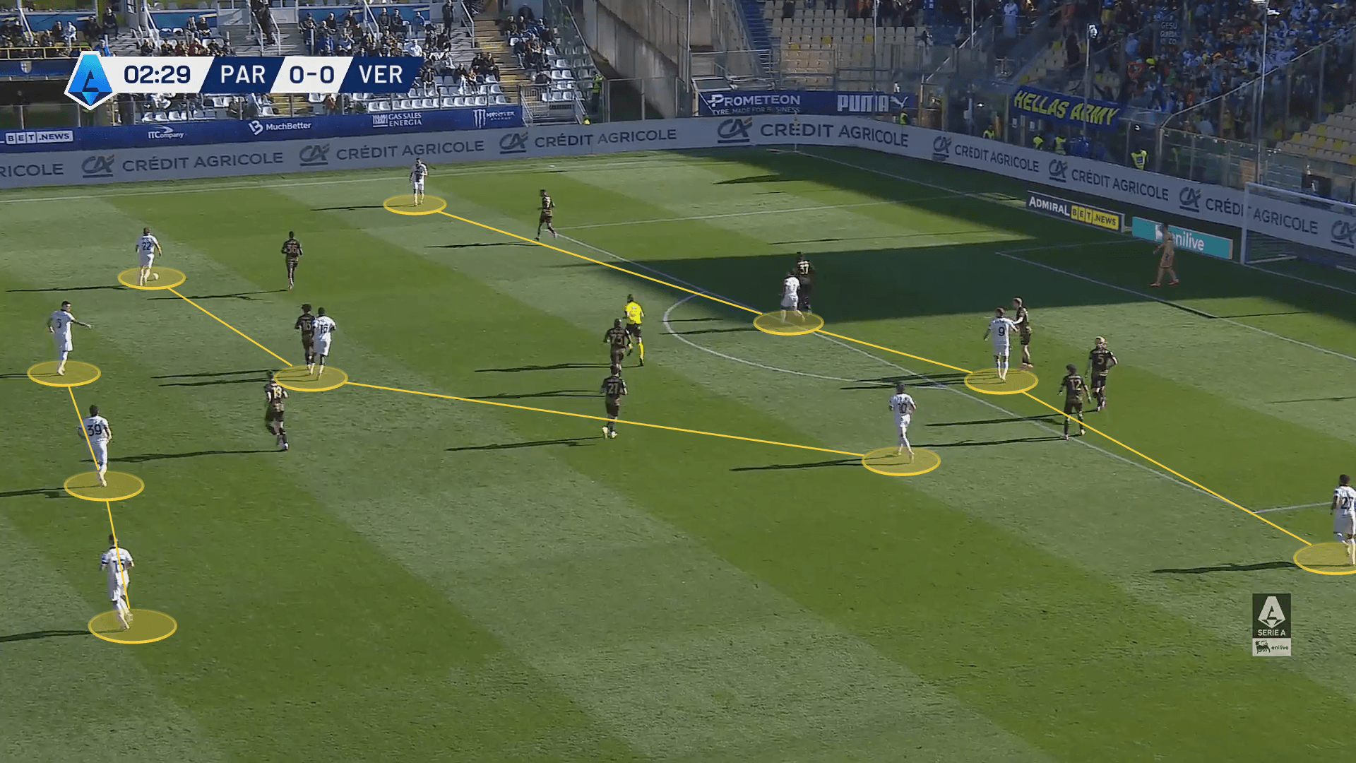 En sus primeros 10 partidos de liga esta temporada, promediaron 4,0 posesiones ganadas en el tercio ofensivo cada 90 minutos, lo que ocupó el quinto lugar en la Serie A. Parma anotó agresivamente en el campo y, si bien esto funcionó, la falta de coordinación a veces permitió que los equipos los superaran con demasiada facilidad.