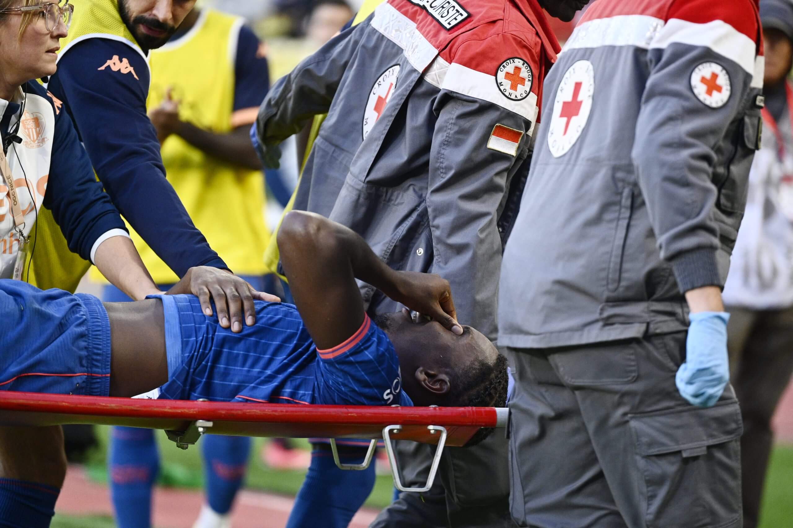 Pero la pierna izquierda de Bombito sobresale precariamente. Mientras salta al suelo, prueba cuánto peso puede soportar sólo con esa pierna. En octubre, Bombito se rompió la tibia izquierda mientras jugaba en su club Niza. No ha jugado desde entonces. Todavía hay un bulto elevado en la espinilla de Bombito.