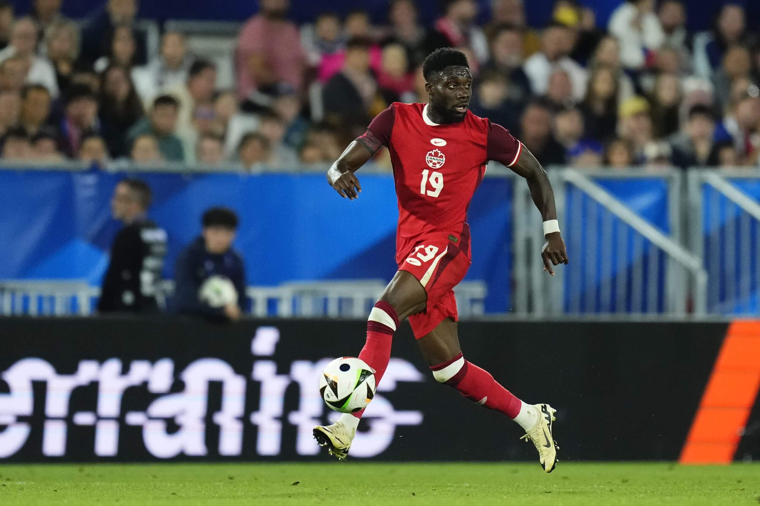 Alphonso Davies suffered an anterior cruciate ligament injury while on Canada duty in March 2025 (Jose Breton/Pics Action/NurPhoto via Getty Images)