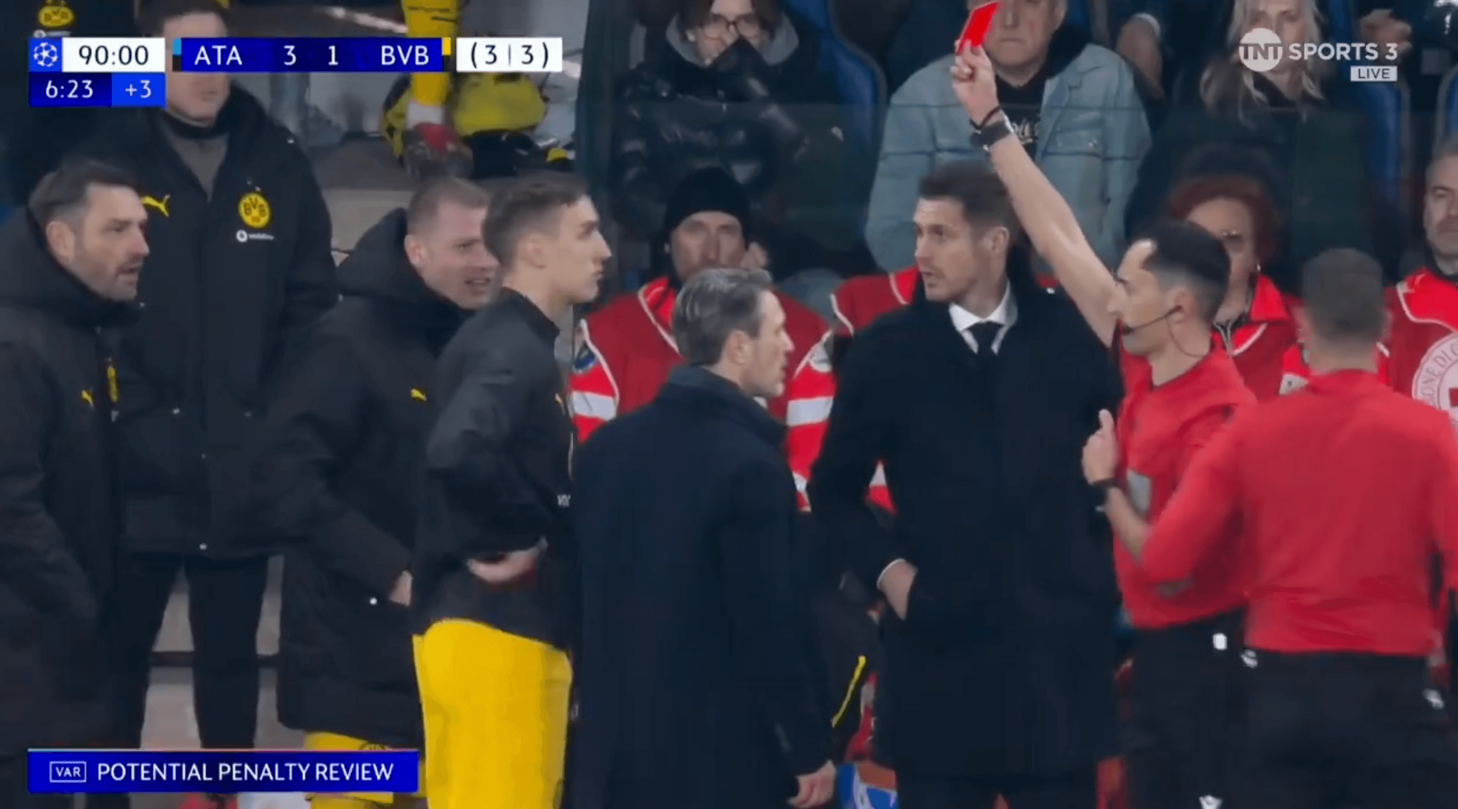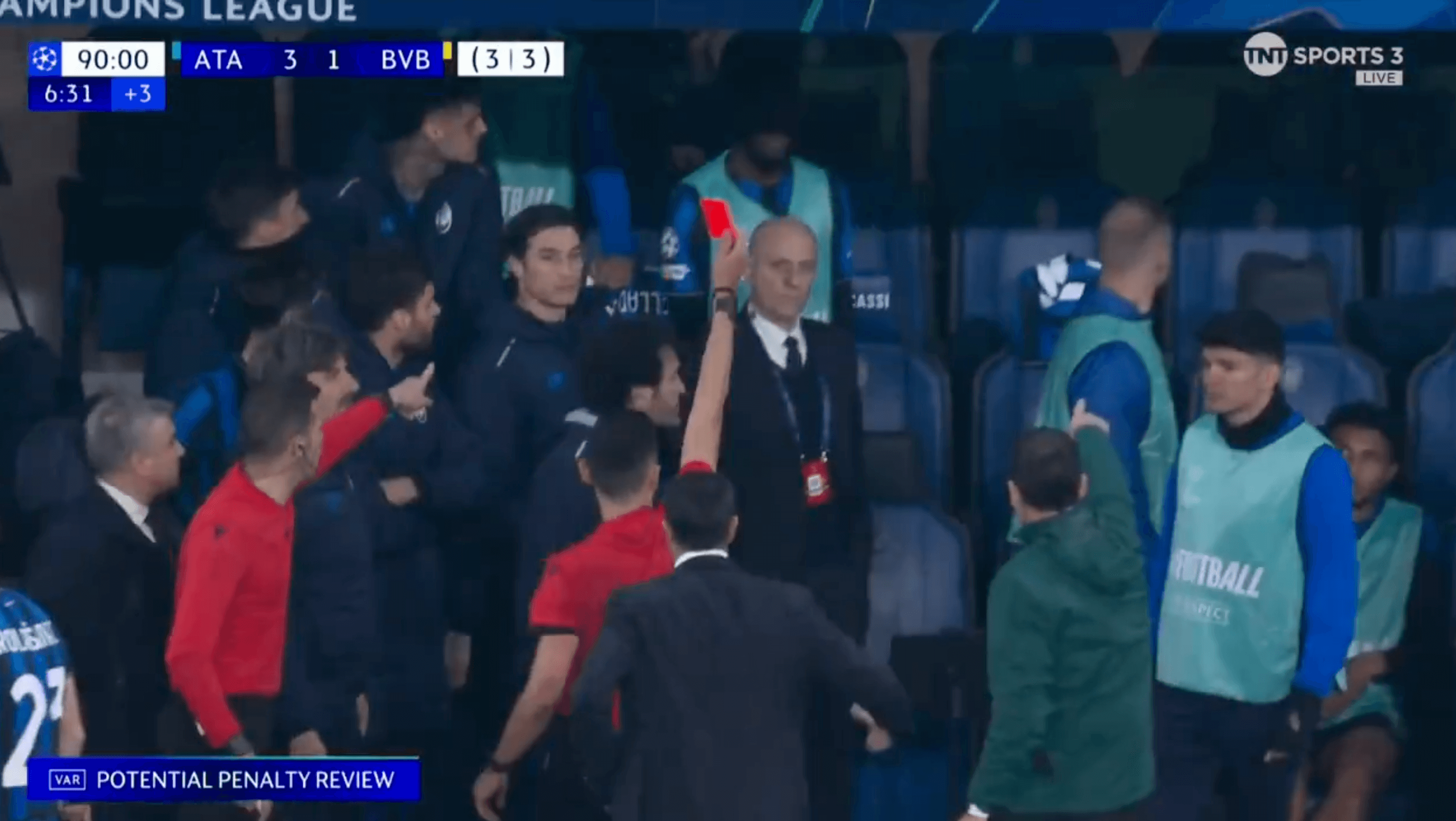 Tres tarjetas rojas en 30 segundos, un polémico penalti en el último momento, sangre por todas partes: ¿has visto alguna vez un final como el que llevó al Atalanta a octavos de final a expensas del Borussia Dortmund?