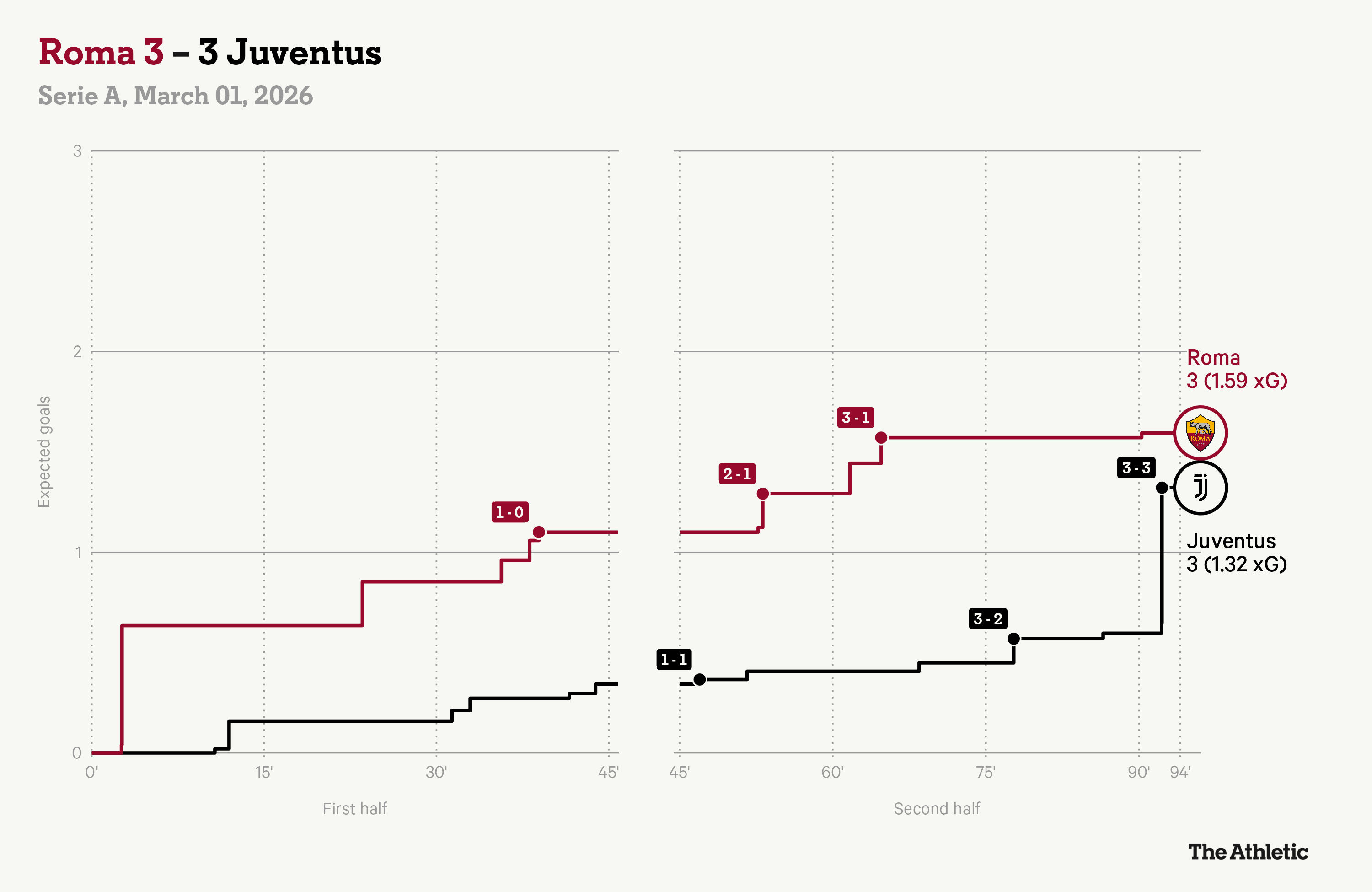 Un punto ganado por Gatti y la Juve fue visto como dos puntos perdidos por la Roma, la guinda del pastel. Aparte del derbi contra una Lazio en apuros, aún no han ganado en los partidos importantes, aunque para ser justos, una victoria por 1-0 contra el Como, contra el que volverán a jugar dentro de quince días, debería contar como tal.