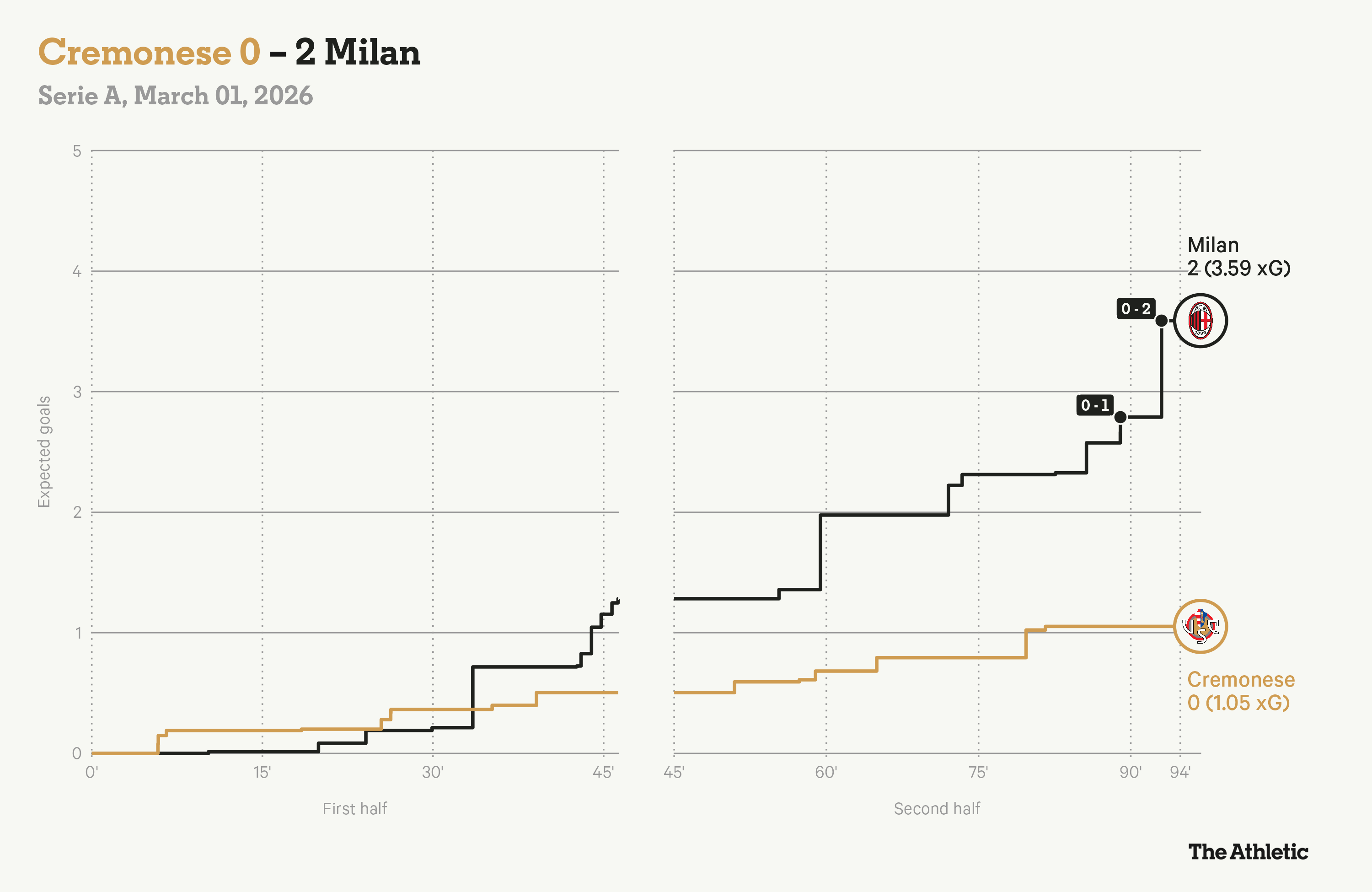 El Milán merecía los puntos tras crear un récord de la temporada de 3,56xG. Quizás todo hubiera terminado antes si Christian Pulisic hubiera sido tan clínico como lo fue en la primera mitad de la temporada. Sin goles en este año natural, redujo una cifra anulada tras ser sustituido por Christopher Nkunku, que marcó el segundo del equipo.